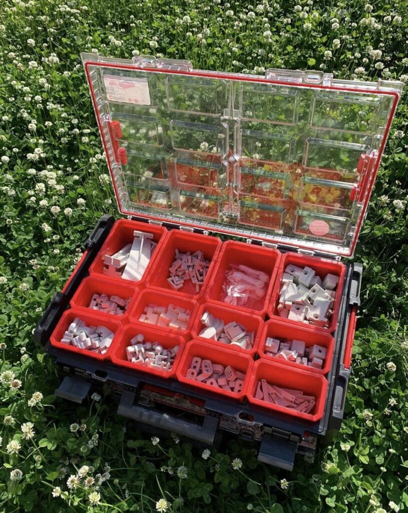 Jokaiselle osalle on salkussa nimetty paikka. Näin varaosat pysyvät aina järjestyksessä ja hävikkiä ei synny.